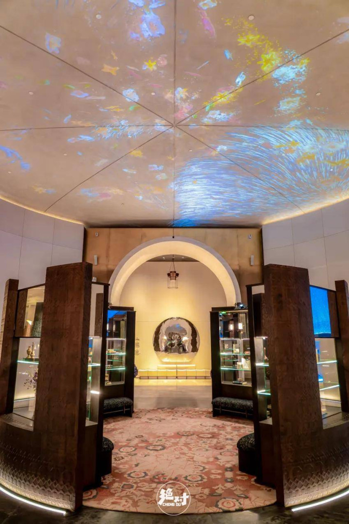 走进大堂,文化与奢意的融合令人印象深刻。传统毡房穹顶被光影技术解构重组,仿佛一座漂浮于空中的星图;穿行于其中的丝路长廊,更是宛如漫步于历史的长卷。